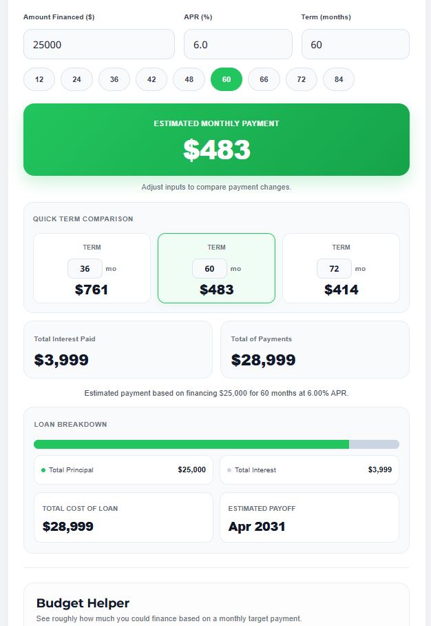 Calculate payments, compare options, and understand your deal — before you ever step into a dealership.
